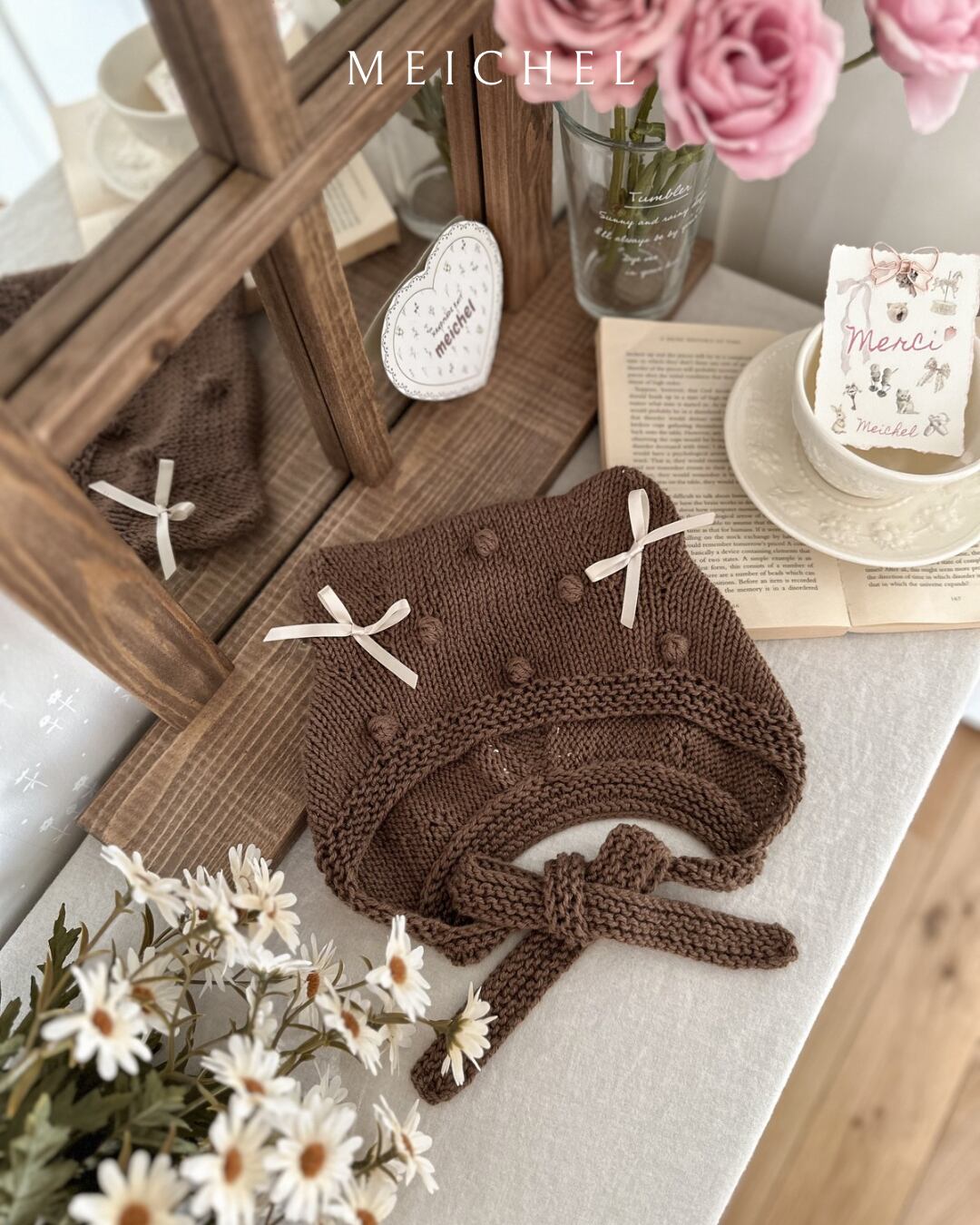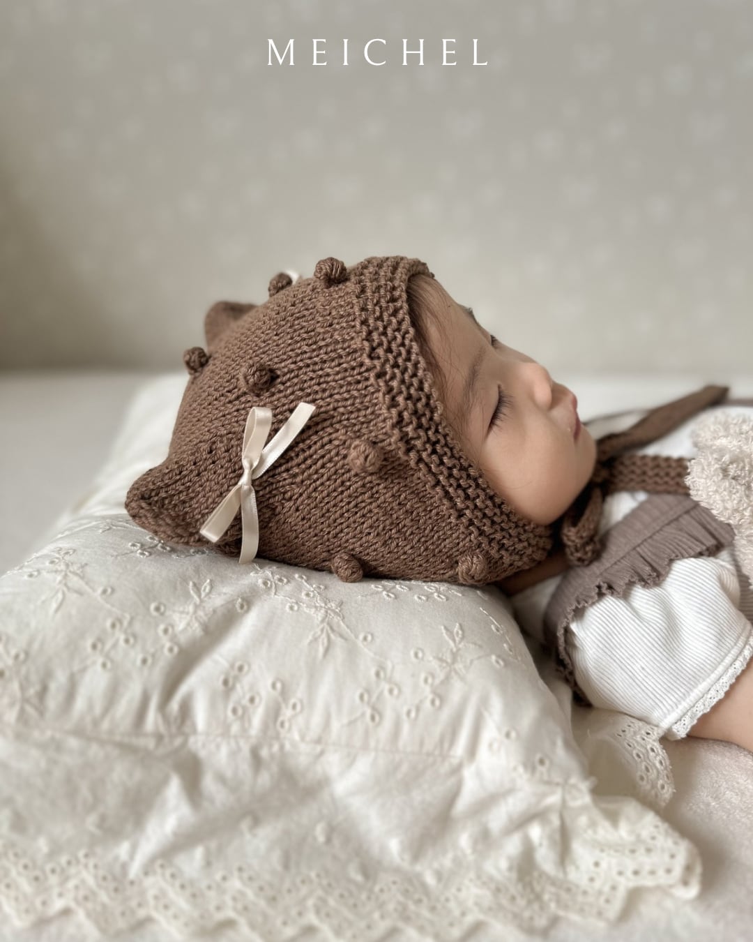 #ハンドメイド #ニットボンネット #ベビーボンネット #ニット帽子 #アニマルボンネット #猫耳ボンネット #くま耳ボンネット #クマ耳ボンネット #handmade #knitbonnet #babybonnet #animalbonnet #kittybonnet #bearbonnet