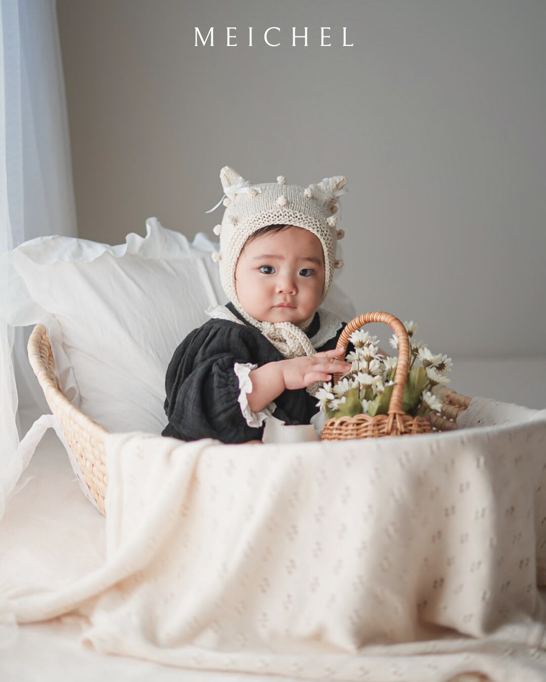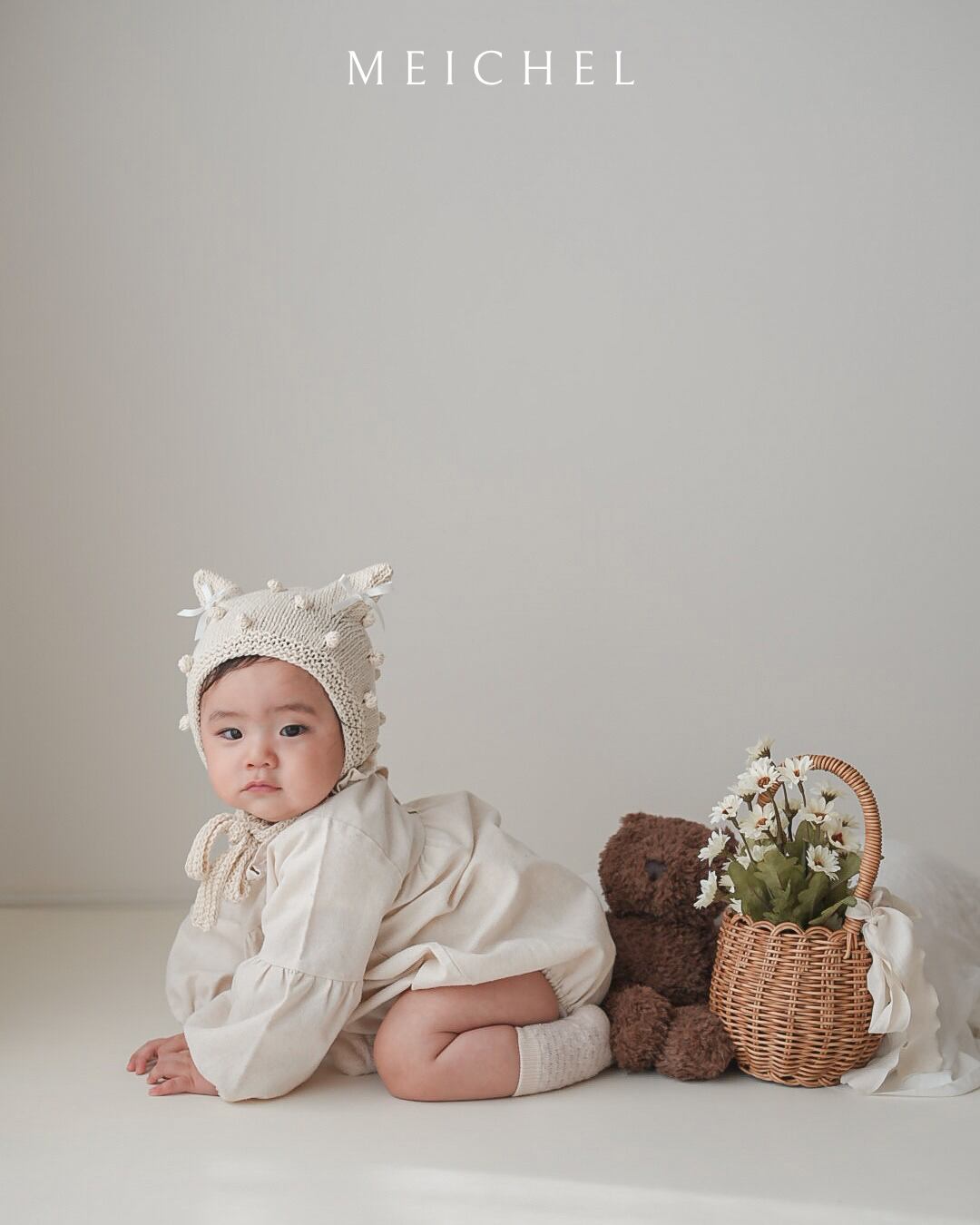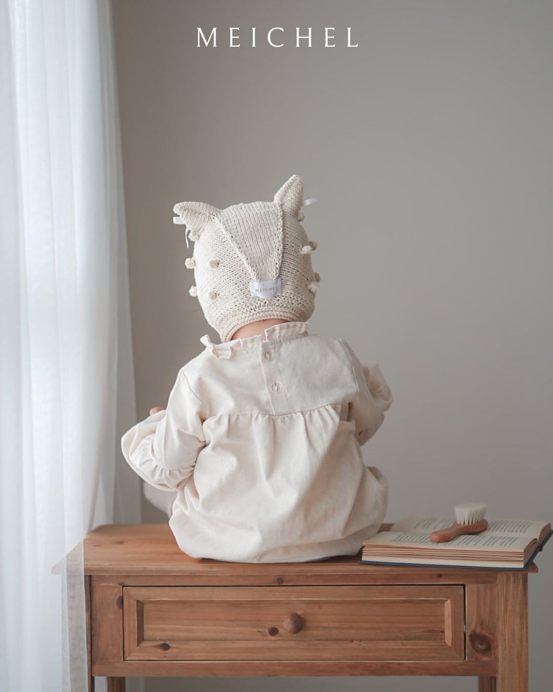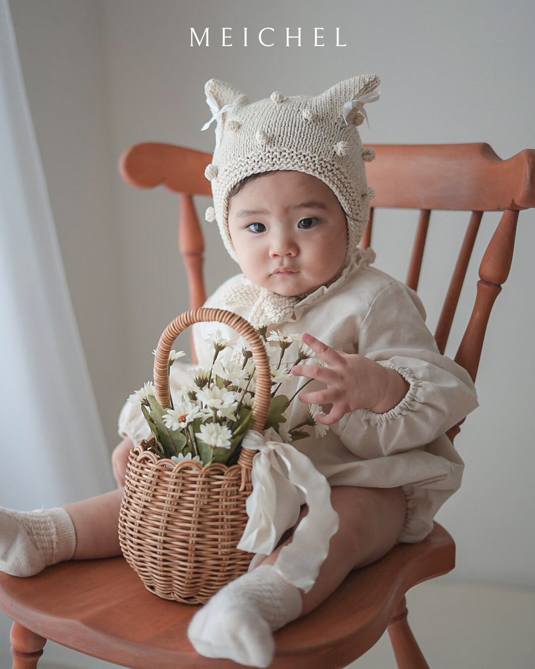 【受注制作】Popcorn cotton kitty bonnet / cream