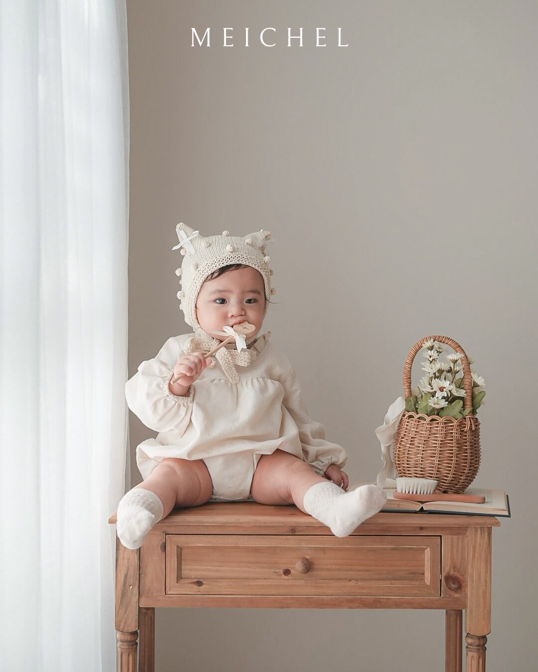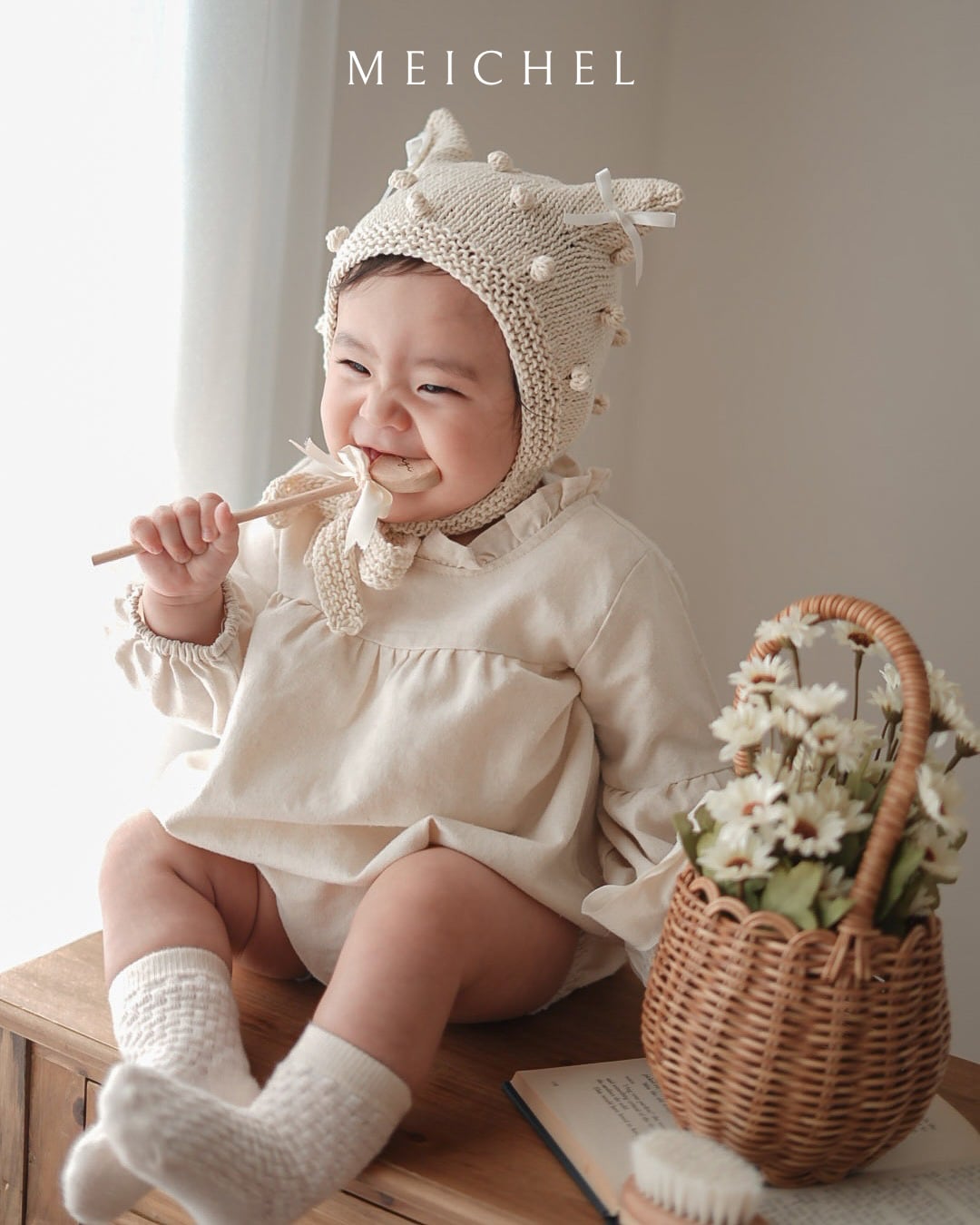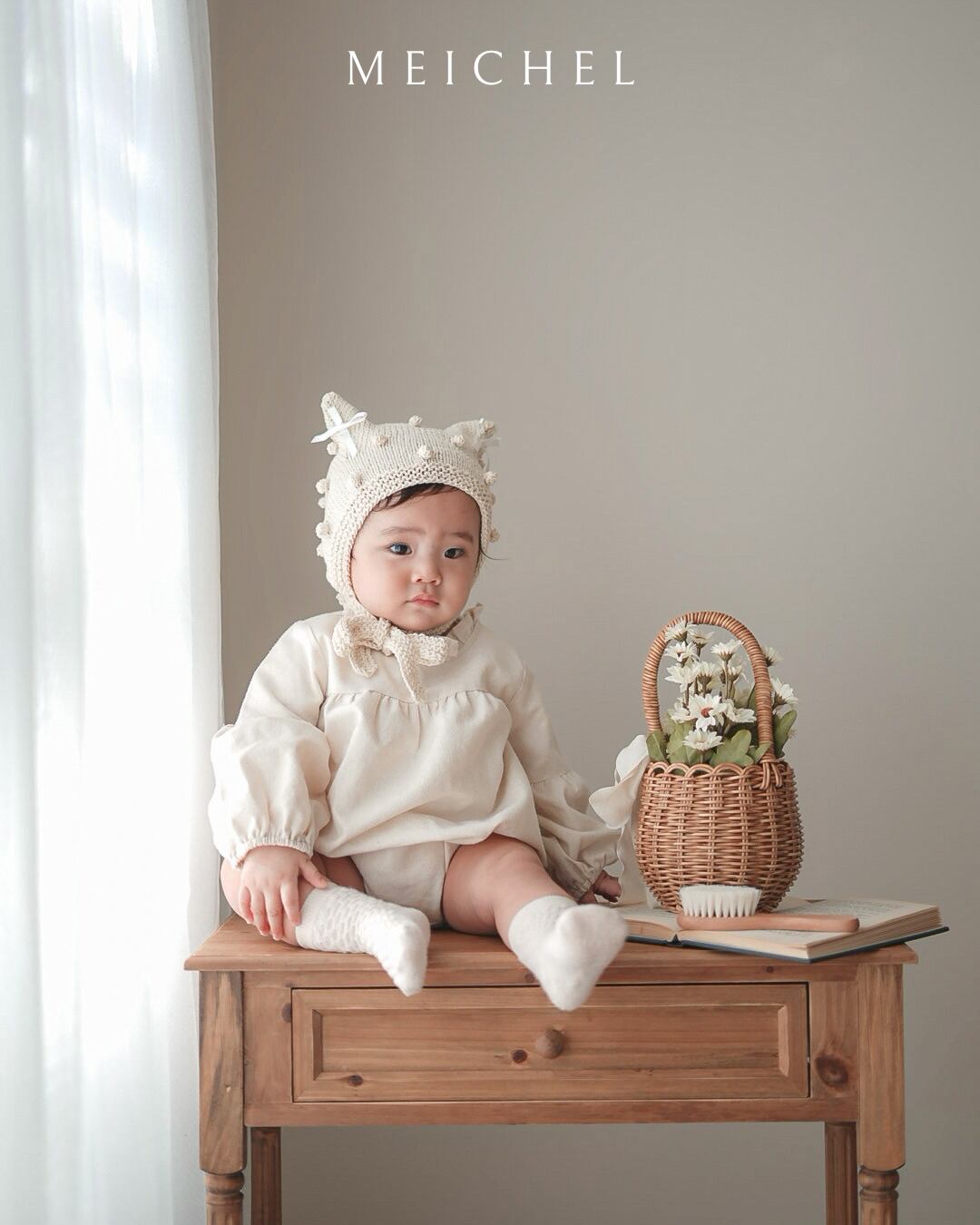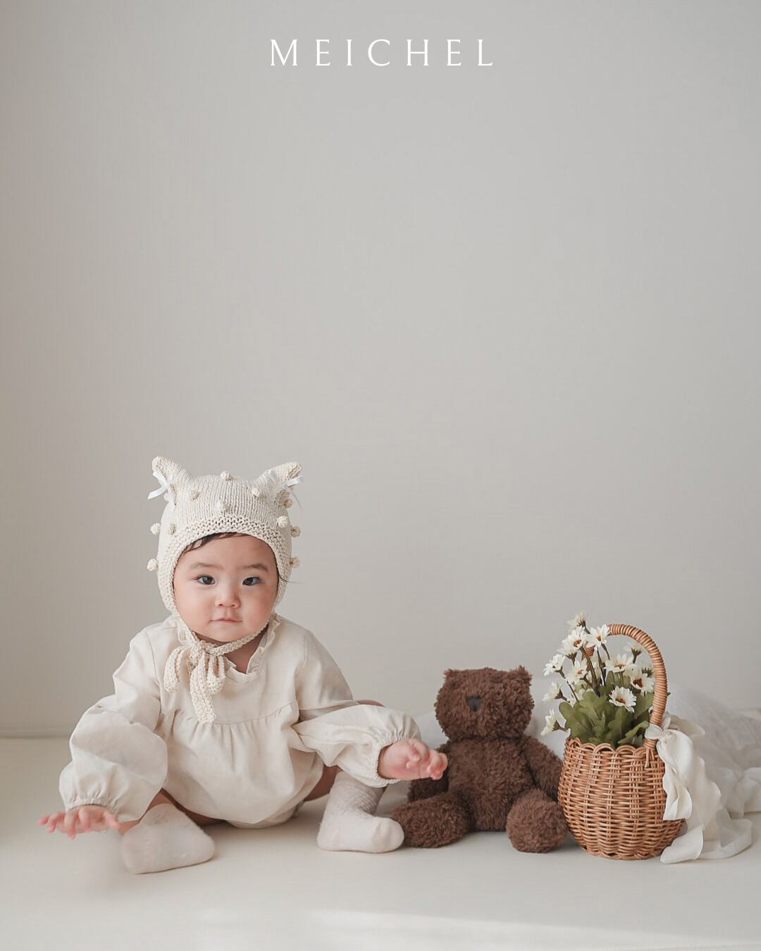 【受注制作】Popcorn cotton kitty bonnet / cream