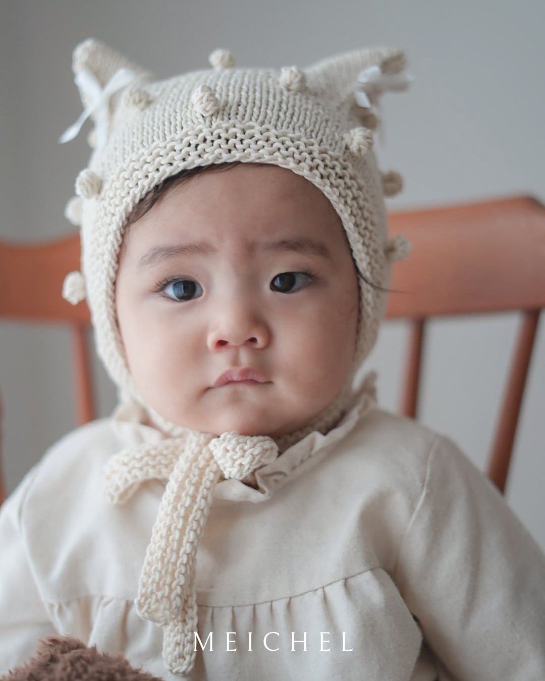 #ハンドメイド #ニットボンネット #ベビーボンネット #ニット帽子 #アニマルボンネット #猫耳ボンネット #くま耳ボンネット #クマ耳ボンネット #ネコ耳ボンネット #白猫 #しろくま #コスプレ #handmade #knitbonnet #babybonnet #animalbonnet #kittybonnet #bearbonnet