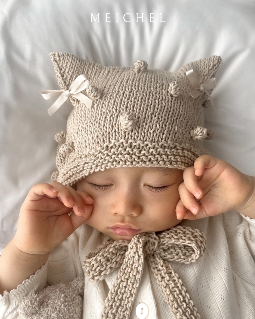 #ハンドメイド #ニットボンネット #ベビーボンネット #ニット帽子 #アニマルボンネット #猫耳ボンネット #くま耳ボンネット #クマ耳ボンネット #コスプレ #ネコ耳ボンネット #白猫 #しろくま #handmade #knitbonnet #babybonnet #animalbonnet #kittybonnet #bearbonnet