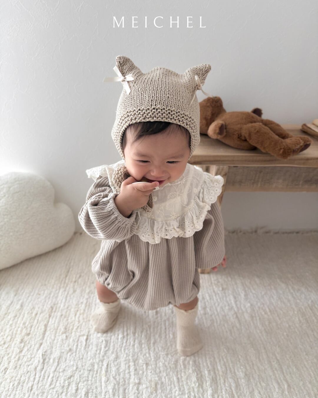 #ハンドメイド #ニットボンネット #ベビーボンネット #ニット帽子 #アニマルボンネット #猫耳ボンネット #くま耳ボンネット #クマ耳ボンネット #コスプレ #ネコ耳ボンネット #白猫 #しろくま #handmade #knitbonnet #babybonnet #animalbonnet #kittybonnet #bearbonnet