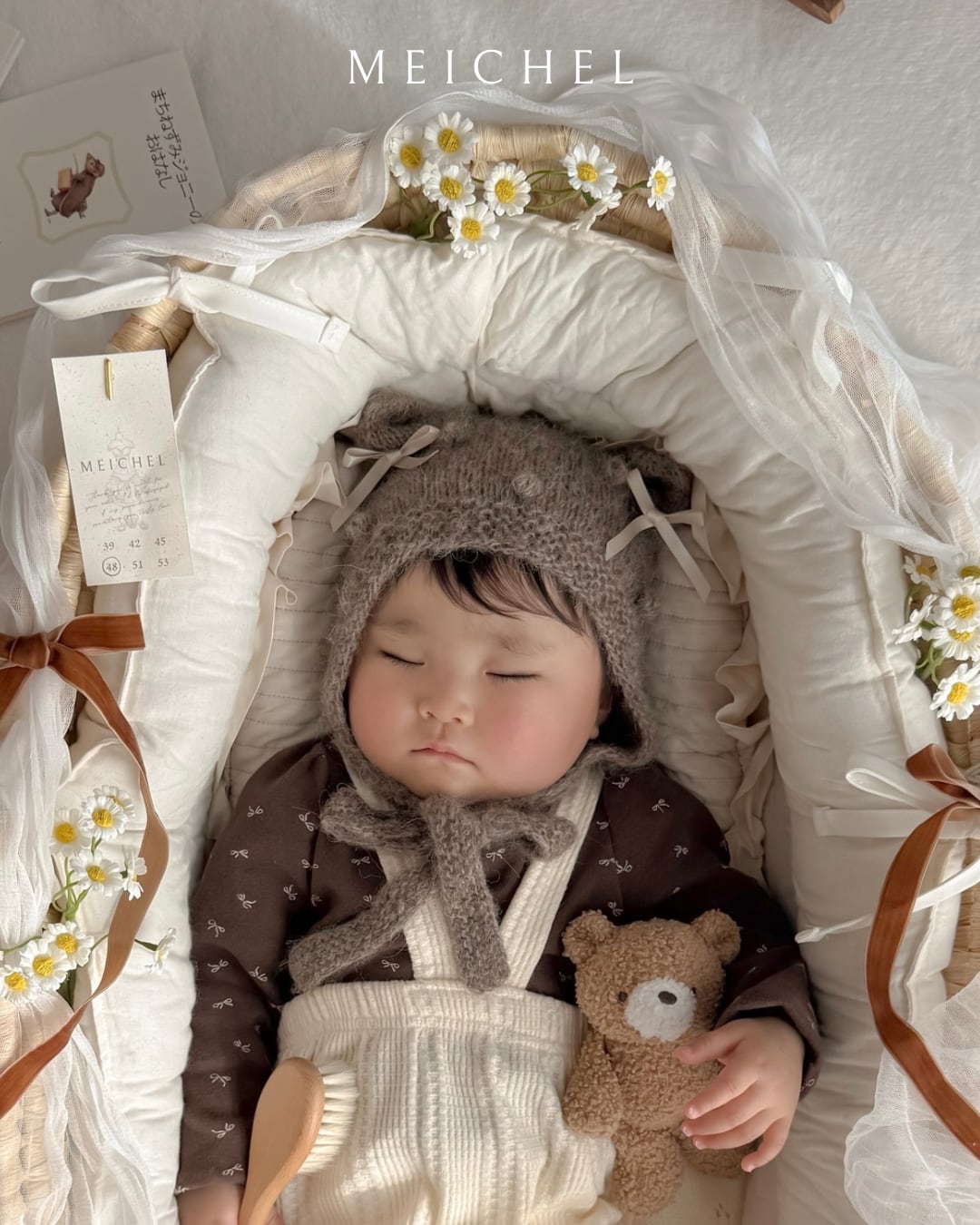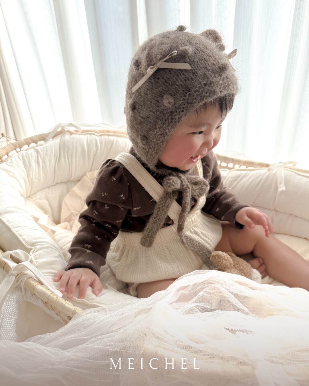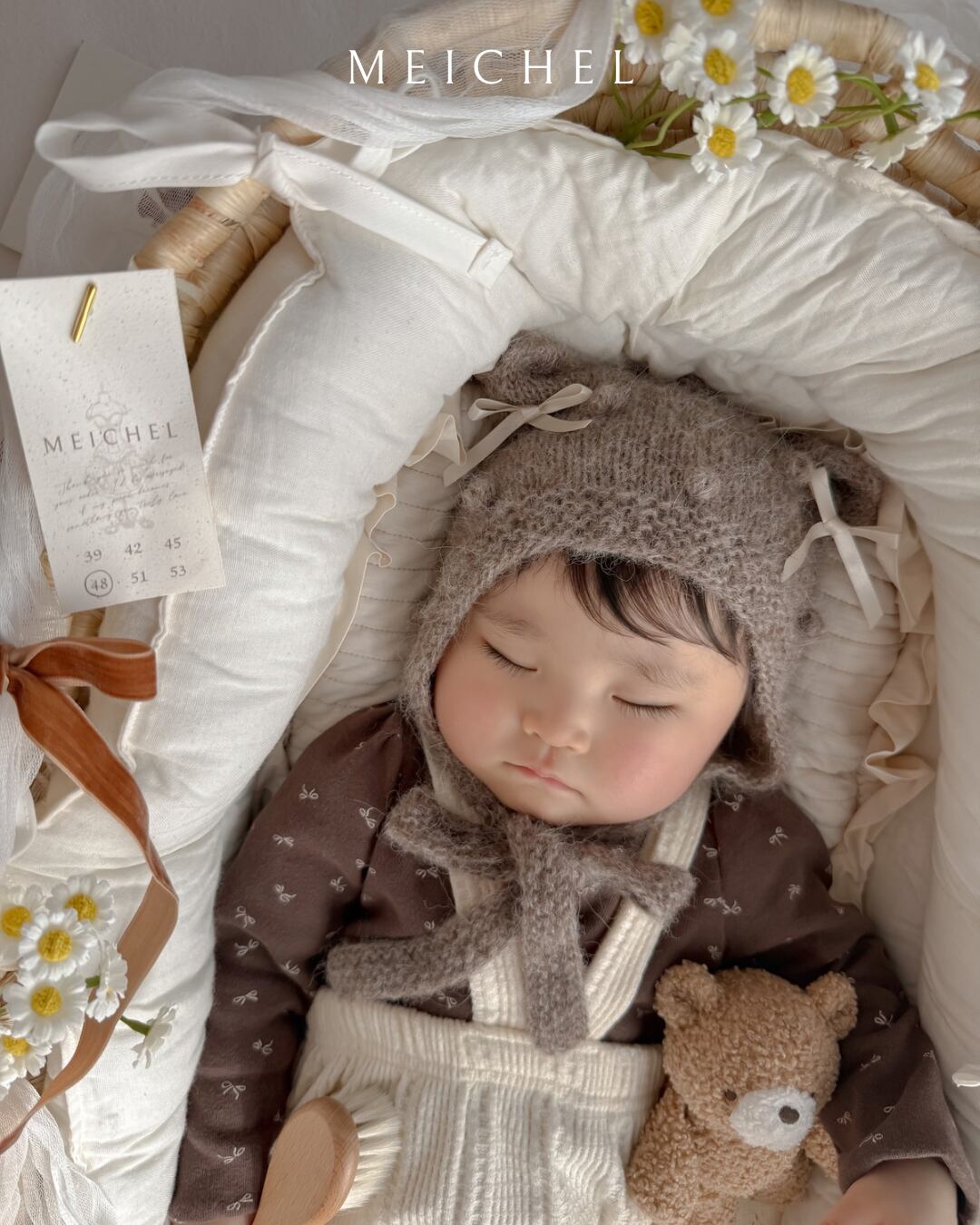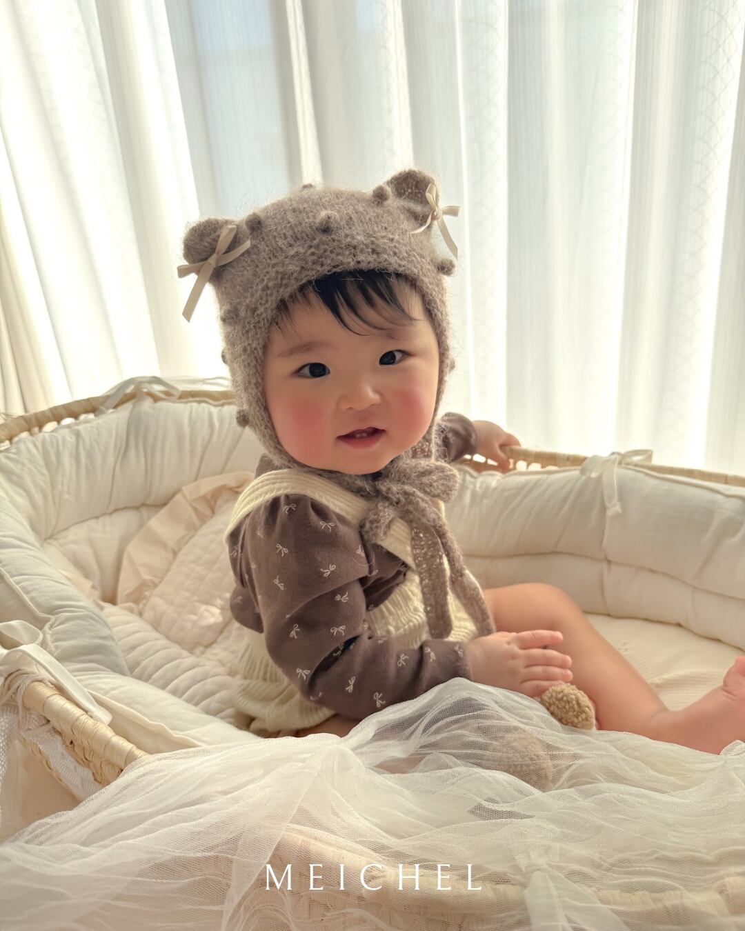 #ハンドメイド #ニットボンネット #ベビーボンネット #ニット帽子 #アニマルボンネット #くま耳ボンネット #クマ耳帽子 #handmade #knitbonnet #babybonnet #animalbonnet