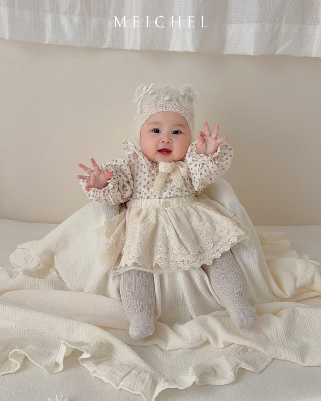 #ハンドメイド #ニットボンネット #ベビーボンネット #ニット帽子 #アニマルボンネット #くま耳ボンネット #クマ耳帽子 #handmade #knitbonnet #babybonnet #animalbonnet